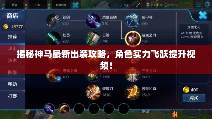 神马游戏是一款受欢迎的角色扮演游戏,玩家需要不断提升自己的角色实力,以完成各种挑战和任务,在游戏中,选择合适的装备对于角色实力的提升至关重要,了解最新的出装攻略是非常重要的。