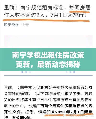 随着城市发展和人口增长,南宁市学校周边的出租住房需求逐渐上升,为了满足广大师生及家长的需求,南宁市政府近期针对学校出租住房政策进行了一系列更新和调整,本文将详细介绍南宁学校出租住房政策的最新消息,帮助大家更好地了解相关政策。