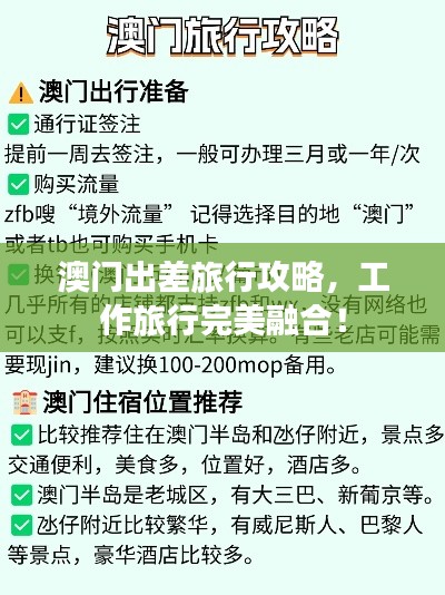 出差澳门不仅是一种工作机会,更是一次难忘的旅行体验,按照以上攻略安排行程,你将尽情享受澳门的美丽风光、美食文化、购物乐趣和人文魅力,愿你在这次出差之旅中,收获满满的工作成果和美好的回忆。