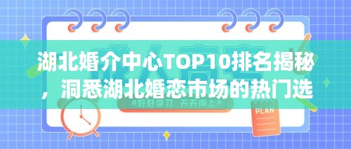 随着社会的快速发展,婚恋问题成为许多人关注的焦点,在湖北这片繁荣的土地上,婚介中心如雨后春笋般涌现,为广大单身男女提供了丰富的交友资源,本文将为您揭晓湖北婚介中心排名前十名,带您了解湖北婚恋市场的热门选择。