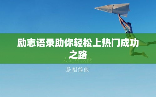 这些上热门成功的励志语录为我们提供了前进的动力和信念,在追求梦想的过程中,我们需要坚持不懈地努力、珍惜每一刻、把握每一个机会,我们还要勇敢面对困难与挑战、不断攀登高峰、坚定信念、勇往直前,相信只要我们用心践行这些励志语录、不断努力、勇敢追梦、必定能够走向成功、领略到更美的风景,我们将继续探索、学习、成长、为实现更加美好的人生而努力拼搏!