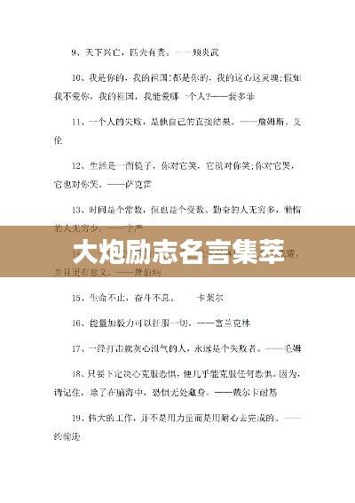 在这个充满挑战与机遇的时代,我们需要一些励志的话语来激励自己不断前行,大炮励志经典语录,正是这样一股催人奋进的力量,它们像明灯一样,指引我们在人生的道路上勇往直前。