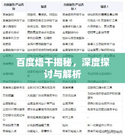 转载请注明来自工巨商城,本文标题:《百度焐干揭秘,深度探讨与解析》