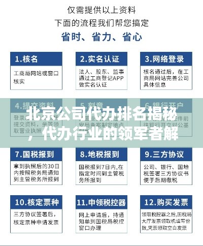 随着市场经济的发展,越来越多的企业开始寻求代办机构的帮助来扩大业务规模、优化管理结构等,在北京这座繁华都市,代办行业也日渐兴起,众多代办公司如雨后春笋般涌现,本文将为您解读北京公司代办行业的排名,带您了解这些代办行业的佼佼者。