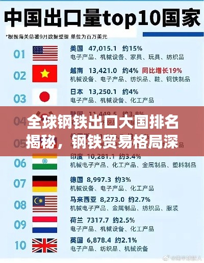 钢铁产业作为全球重要的基础工业之一,其出口贸易一直是各国经济发展的重要支柱,本文将探讨全球钢铁出口贸易的格局,并重点介绍世界钢铁出口排名靠前的国家,揭示其在全球钢铁市场中的地位及未来发展趋势。