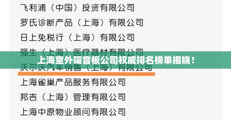 转载请注明来自工巨商城,本文标题:《上海室外隔音板公司权威排名榜单揭晓!》