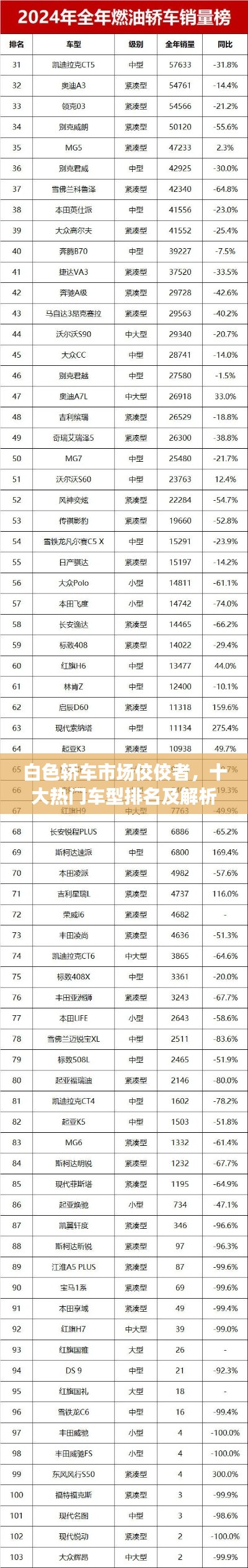 白色轿车市场佼佼者,十大热门车型排名及解析