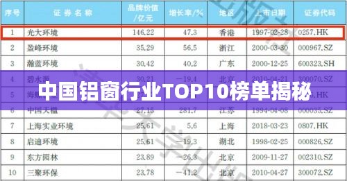 在中国建筑行业中,铝窗因其优良的材质性能、多样化的设计风格以及良好的耐用性而备受消费者青睐,本文将介绍中国铝窗行业排名前十名的企业,这些企业在技术研发、产品质量、市场份额等方面均处于行业领先地位。
