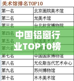 是中国铝窗行业排名前十名的企业,这些企业在产品研发、品质控制、市场营销等方面均表现出色,是中国铝窗行业的佼佼者,随着消费者对建筑美观和节能性能的要求不断提高,铝窗市场将会继续扩大,这些企业将继续发挥自身优势,不断创新和提高产品质量,满足消费者的需求,随着技术的不断进步和市场的不断变化,中国铝窗行业将会迎来新的发展机遇和挑战。