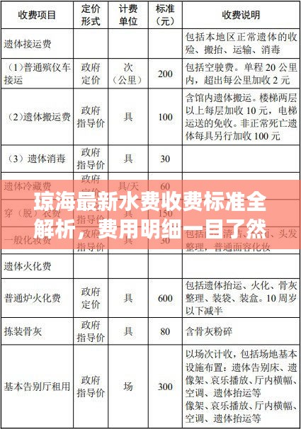 水是生命之源,是我们日常生活中不可或缺的重要资源,随着社会的不断发展,水资源的利用与管理也日趋重要,为了加强水资源的管理和使用,琼海市近期对水费收费标准进行了调整,本文将详细介绍琼海最新的水费收费标准,以便市民了解和遵守。