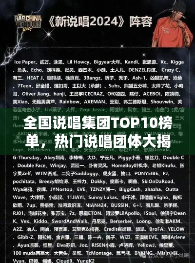 说唱音乐,以其独特的节奏和韵律,深受广大音乐爱好者的喜爱,在当今的乐坛中,说唱音乐占据了一席之地,而全国说唱集团更是汇聚了众多说唱精英,创作出了许多经典作品,本文将对全国说唱集团排名前十名进行介绍,带您领略说唱音乐的魅力。