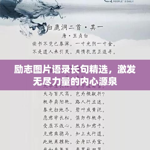 励志语录,是一种鼓舞人心的言语,能够激发我们的积极性和创造力,这些长句通常蕴含着深刻的哲理和丰富的情感,让我们在困境中找到前进的动力,如同美丽的图片,励志语录通过简洁的语言,传递着正能量和信念,让我们感受到生活的美好。