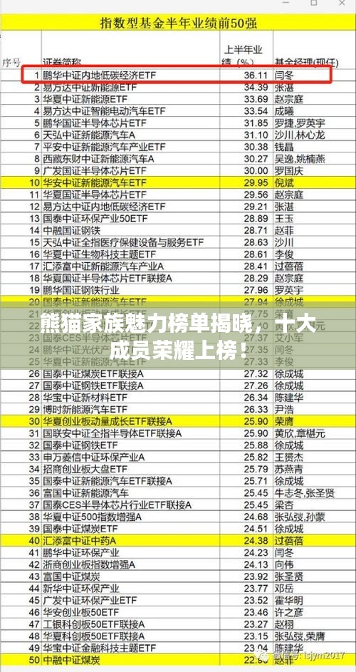 熊猫家族魅力榜单揭晓,十大成员荣耀上榜!