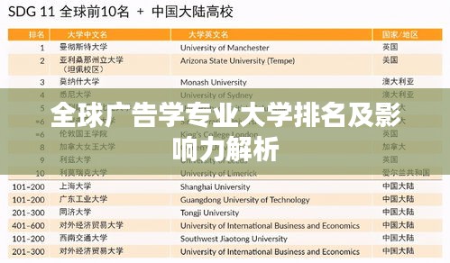 随着广告行业的快速发展,全球各大高校在广告学领域的竞争也日益激烈,广告学大学的排名通常会根据多个因素综合评估,包括但不限于教学质量、科研成果、师资力量、学生满意度等,这些排名反映了全球各大学在广告学领域的综合实力和影响力。