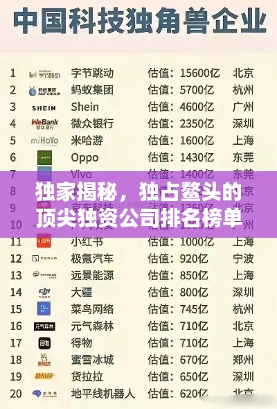 独家揭秘,独占鳌头的顶尖独资公司排名榜单!