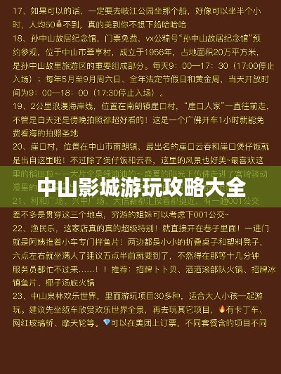中山影城是中山市的一颗璀璨明珠,无论是观影还是游览周边景点,都能让你感受到中山市的独特魅力,希望这篇旅游攻略能帮助你更好地了解中山影城,享受你的观影之旅。