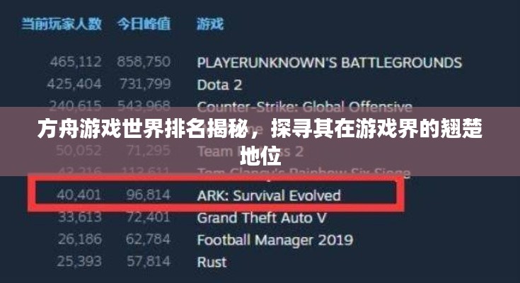 方舟游戏世界排名揭秘,探寻其在游戏界的翘楚地位