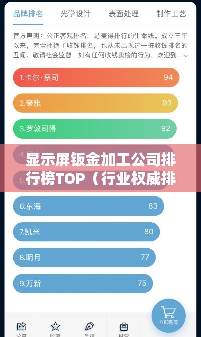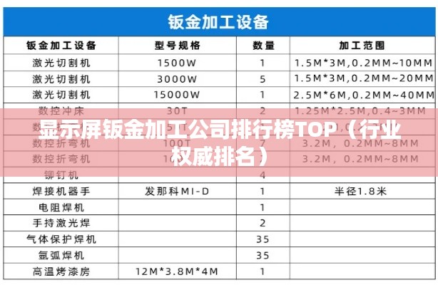 随着科技的不断发展,显示屏钣金加工行业逐渐崭露头角,成为制造业中的热门领域,本文将介绍一些在显示屏钣金加工领域表现突出的公司,并探讨它们在行业中的排名及优势。