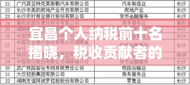 宜昌个人纳税前十名揭晓,税收贡献者的荣耀榜单
