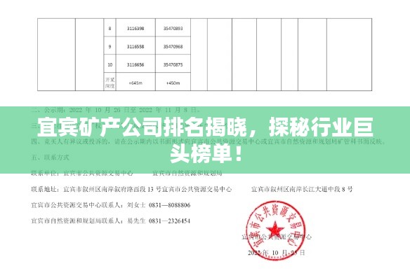 宜宾市,以其得天独厚的地理位置和丰富的资源而著称,在这座美丽的城市中,矿产行业尤为突出,众多矿产公司如雨后春笋般崭露头角,本文将为您详细介绍宜宾矿产公司的排名,带您了解这些企业的风采。