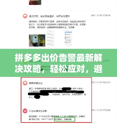 随着互联网电商的飞速发展,拼多多以其独特的团购模式赢得了广大消费者的喜爱,在拼多多平台上,商家们时常面临出价告警的问题,这不仅影响了商品的推广,还可能对商家的信誉造成损失,本文将为大家介绍拼多多出价告警的最新解决办法,帮助商家们更好地解决这一问题。