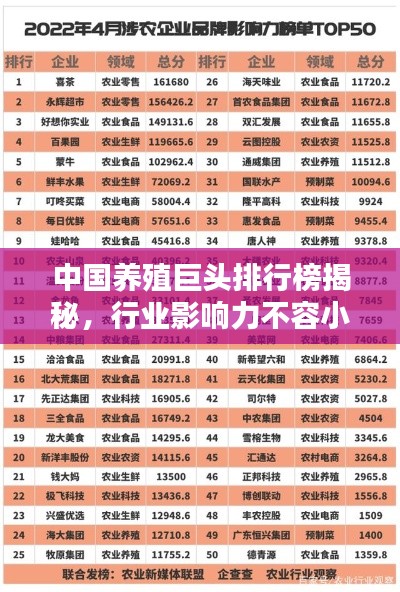 中国养殖巨头排行榜揭秘,行业影响力不容小觑