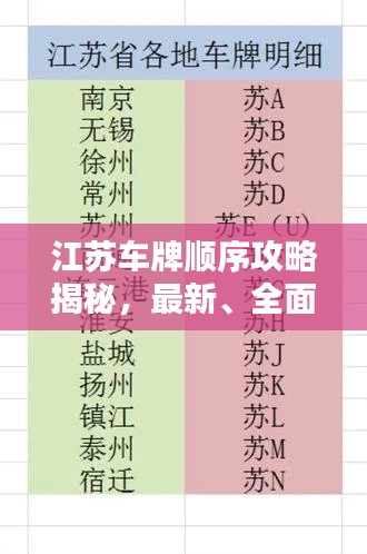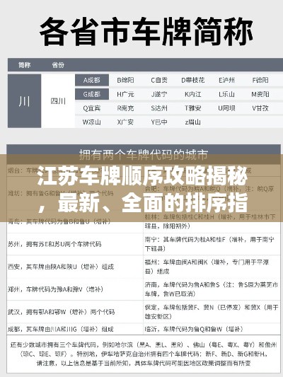 江苏省,作为中国经济发达的地区之一,汽车保有量巨大,车牌号码的排列顺序对于车主和交通管理者来说都至关重要,了解江苏车牌的顺序规则,不仅可以帮助车主快速识别车辆归属地,还可以帮助交通管理部进行车辆登记和监管,本文将为您详细介绍江苏车牌顺序的最新攻略。