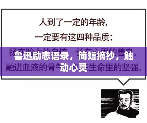 鲁迅,伟大的现代文学家和思想家,他的作品不仅揭示了社会的矛盾与不公,更是充满了激励人心的励志之言,以下是一些鲁迅语录的简短摘抄,它们富含深刻的哲理,鼓舞人心,给人以力量。