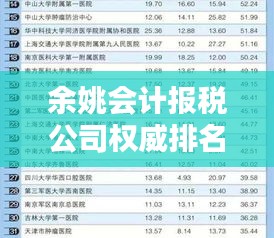 随着经济的繁荣发展,会计报税工作日益受到企业的重视,在余姚市,众多会计报税公司如雨后春笋般涌现,为企业提供了全方位、专业的财税服务,本文将为您介绍余姚会计报税公司的排名表,以便您了解这些公司的实力和服务水平。