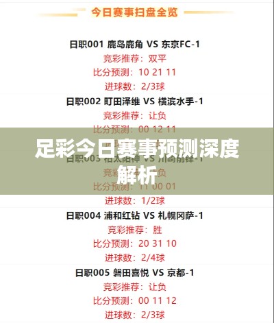 足彩今日赛事预测深度解析