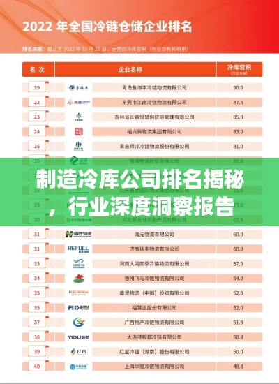 在冷链物流日益重要的今天,冷库作为关键设施之一,其制造公司的实力与声誉逐渐受到广泛关注,本文将探讨制造冷库公司的排名及相关行业洞察,以助您了解这一领域的现状和未来趋势。