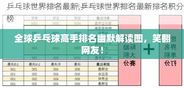 众所周知,乒乓球是全世界最受欢迎的体育项目之一,各国选手为了争夺世界冠军,付出了无数的汗水和努力,而世界乒乓球排名,则是衡量这些选手实力的重要指标之一,有时候,排名也会引发一些搞笑的事情,我们就来一起欣赏一组“世界乒乓球排名搞笑图”,感受其中的乐趣。