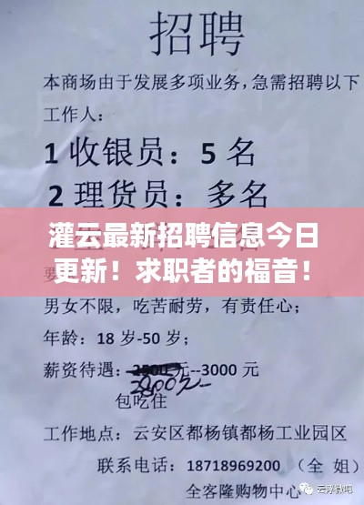 随着经济的不断发展和进步,灌云地区的人才需求也在日益增长,对于求职者而言,获取最新的招聘信息是找到理想工作的关键,本文将为您带来灌云今日的招聘最新信息,帮助您了解当地就业市场的新动态。