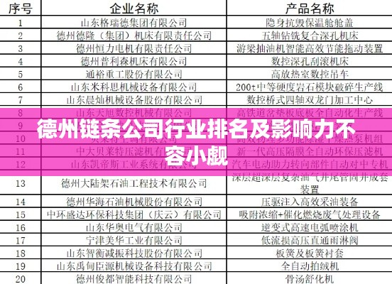 随着全球经济的发展和产业链的完善,链条产业在中国得到了快速发展,作为链条产业的重要一环,德州链条公司在国内外市场上展现出了强大的竞争力,本文将深入探讨德州链条公司的排名及其行业影响力。