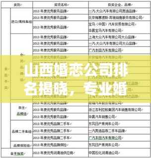 随着现代社会节奏的加快,婚恋问题成为越来越多人关注的焦点,在山西,不少婚恋公司应运而生,为广大单身人士提供牵线搭桥的服务,本文将为您揭晓山西婚恋公司的排名,帮助您找到最合适的婚恋服务提供者。