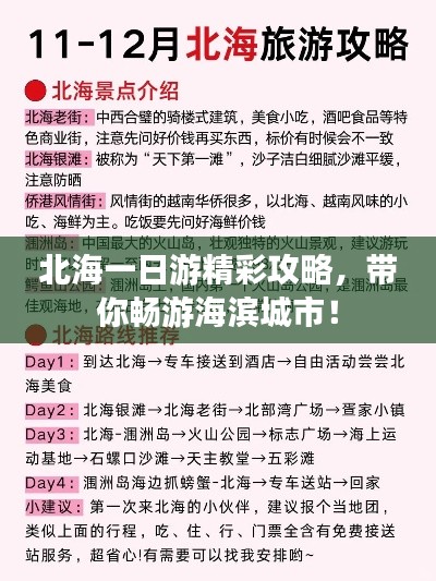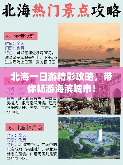 北海市,这座美丽的海滨城市,以其独特的自然景观和丰富的旅游资源,吸引了无数游客,想要体验北海市的一天精彩旅游,那就跟随本攻略,开启你的旅程吧!