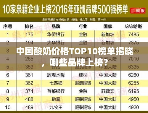 随着人们对健康的关注度不断提高,酸奶作为一种营养健康型乳制品,受到越来越多消费者的喜爱,在中国市场,酸奶品牌众多,价格也是各异,本文将对中国的酸奶价格进行排名,介绍前十名的酸奶产品。