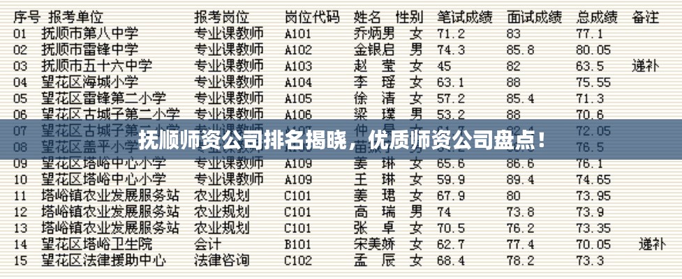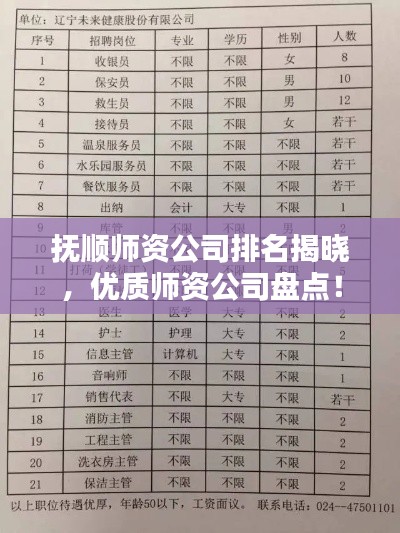 在教育行业中,师资力量的强弱直接关系到教学质量的好坏,抚顺,作为东北地区的重要城市,拥有众多教育机构,其中不乏一些师资排名优秀的公司,本文将为您详细介绍抚顺排名好的师资公司,带您了解这些公司的特点、优势以及它们如何为抚顺的教育事业贡献力量。
