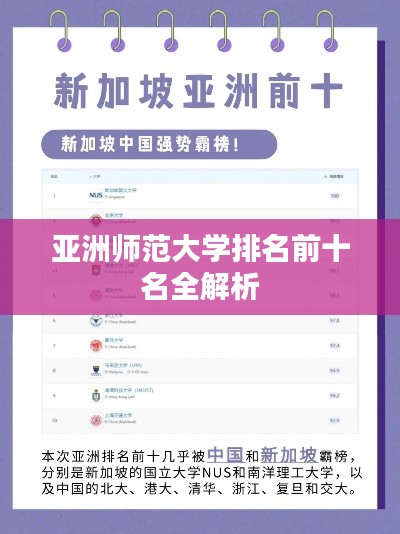 排名并不是唯一的衡量标准,每所学校都有其独特的特色和优势,适合不同的学生和发展需求,在选择学校时,还需要根据自己的兴趣、目标和实际情况进行综合考虑,希望本文能为您了解亚洲师范大学前十名排名提供有益的参考。