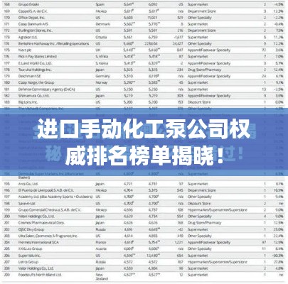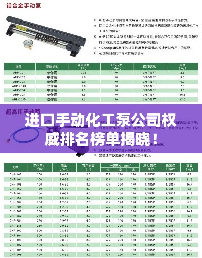 在化工行业中,泵是不可或缺的重要设备,尤其对于手动化工泵而言,其在许多工艺流程中都扮演着关键角色,随着全球化的进程,进口手动化工泵在市场上占据了一定的份额,其高质量和稳定的性能得到了广大用户的认可,本文将探讨进口手动化工泵公司的排名,以期为读者提供有价值的参考。