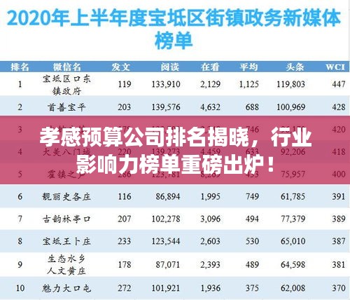 随着经济的繁荣和建设的不断推进,孝感市的预算公司在提供专业服务方面扮演着越来越重要的角色,本文将探讨孝感预算公司的排名及其在行业中的影响力。