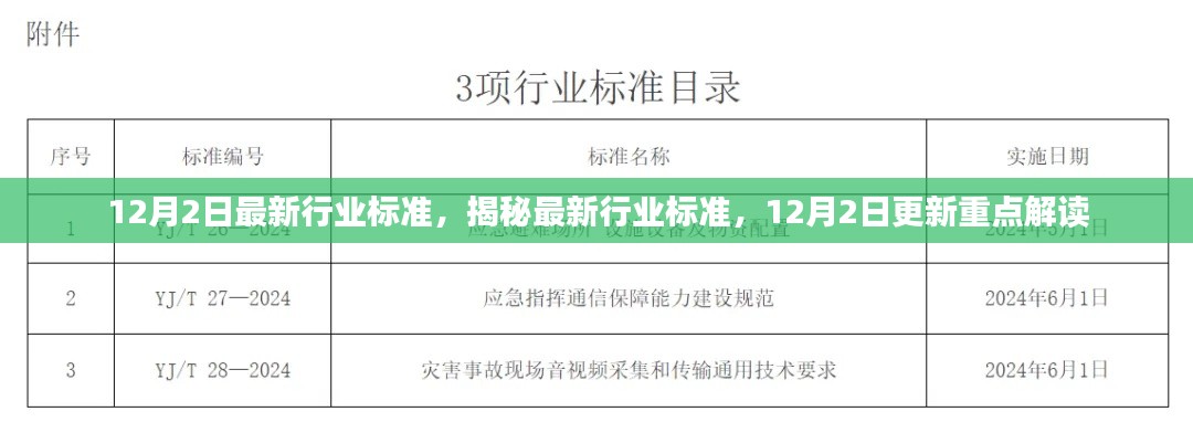 随着科技的不断进步和行业的飞速发展,各行各业都在积极拥抱变革,为提升服务质量、提高工作效率制定更为严格和科学的行业标准,本文将重点解读12月2日最新行业标准的三大要点,帮助大家更好地了解和适应新的行业规范。