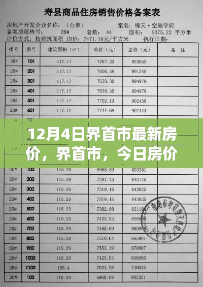 在繁忙的都市生活中,有一个名叫小杨的年轻人,怀揣着对家的憧憬和对美好生活的向往,在界首市追寻着他的梦想家园,这一天,是12月4日,也是小杨决定深入探索界首市最新房价的日子。