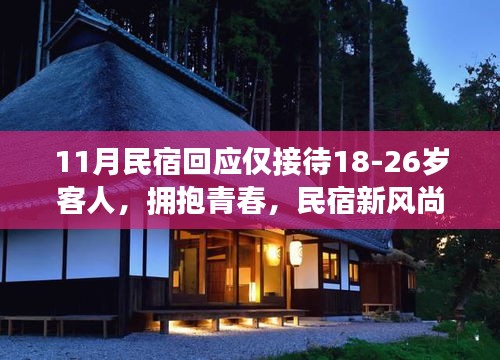 随着季节的脚步迈入十一月,一家独特的民宿引起了广泛关注——这家民宿只接待18-26岁的年轻客人,这不是一种歧视,而是一种鼓励,一种对年轻梦想的致敬,这是一个专为年轻人打造的励志舞台,一个充满正能量和幽默感的学习与成长的乐园。