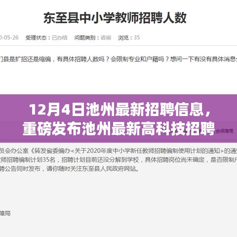 随着科技的飞速发展,池州市正迎来一场全新的职场变革,在即将到来的12月4日,一系列最新招聘信息将正式亮相,引领您走进高科技的职场新世界,我们将聚焦于这些职位的崭新功能亮点与卓越的使用体验,展现科技如何深刻改变生活,激发每一位科技爱好者的无限兴趣与热情!
