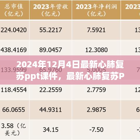 随着医学技术的不断进步,对于心肺复苏这一关键急救技能的掌握与更新日益受到重视,2024年12月4日发布的最新心肺复苏PPT课件,为我们提供了一个全面、系统的学习平台,本文旨在探讨其中涉及的最新观点,并结合个人理解对相关内容进行分析和阐述。