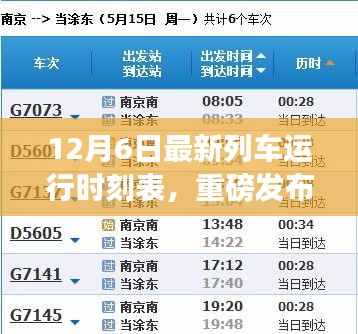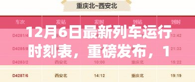 随着科技的飞速发展,我们的出行方式正在经历一场前所未有的变革,我们荣幸地推出12月6日最新列车运行时刻表,将科技与出行完美结合,为您带来前所未有的便捷体验,下面,就让我们一起领略这款高科技产品的魅力吧!