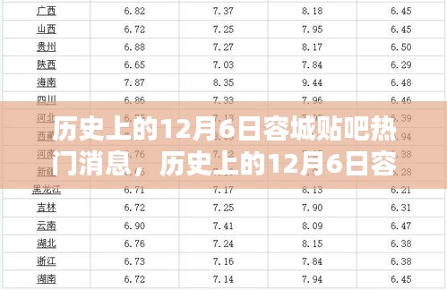 随着互联网的普及和社交媒体的兴起,贴吧作为网络社区的代表之一,成为了人们获取信息、交流思想的重要平台,历史上的12月6日,容城贴吧上出现了不少热门消息,这些消息背后反映了怎样的社会现象和网民心态?本文将选取几个关键事件,对正反方观点进行分析,并提出个人的立场和理由。