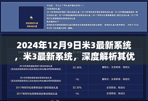 随着科技的飞速发展,智能手机的操作系统也在不断地更新迭代,作为行业内的重要一员,米3的最新系统更新无疑引起了广泛关注,本文将聚焦于2024年12月9日发布的米3最新系统,从不同角度探讨其优缺点及面临的挑战,同时阐述个人立场和观点。