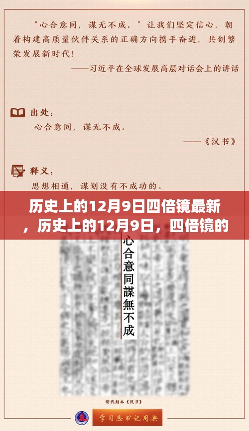 本文将探讨历史上特别是关于四倍镜在12月9日这一天所取得的重大进展,本文将重点讨论四倍镜的发展历程、其在科研领域的应用以及最新的技术突破,通过本文,读者将了解到四倍镜在现代社会中的重要作用及其未来的发展趋势。